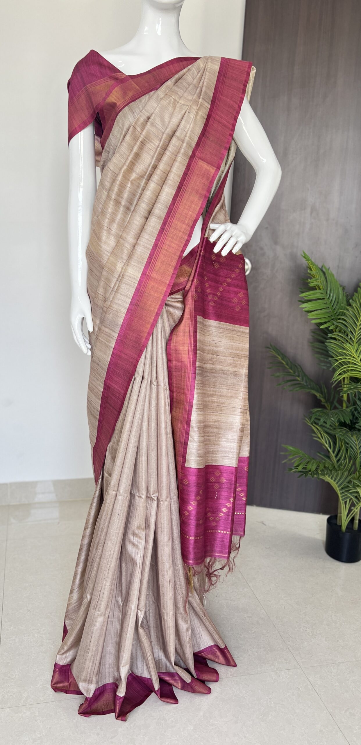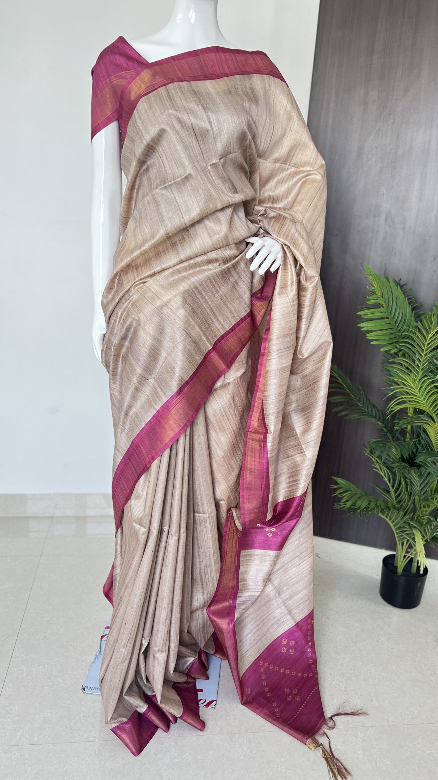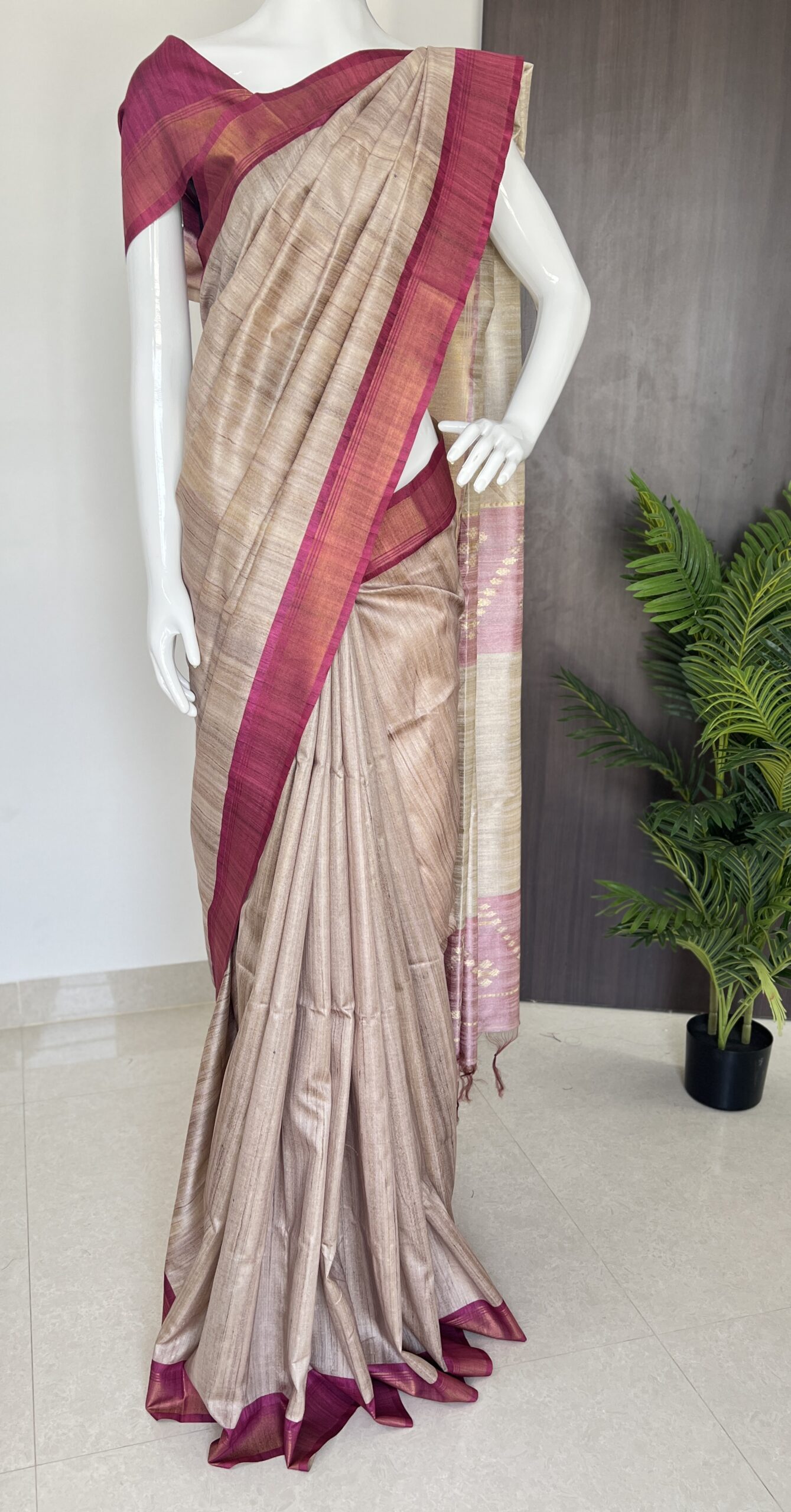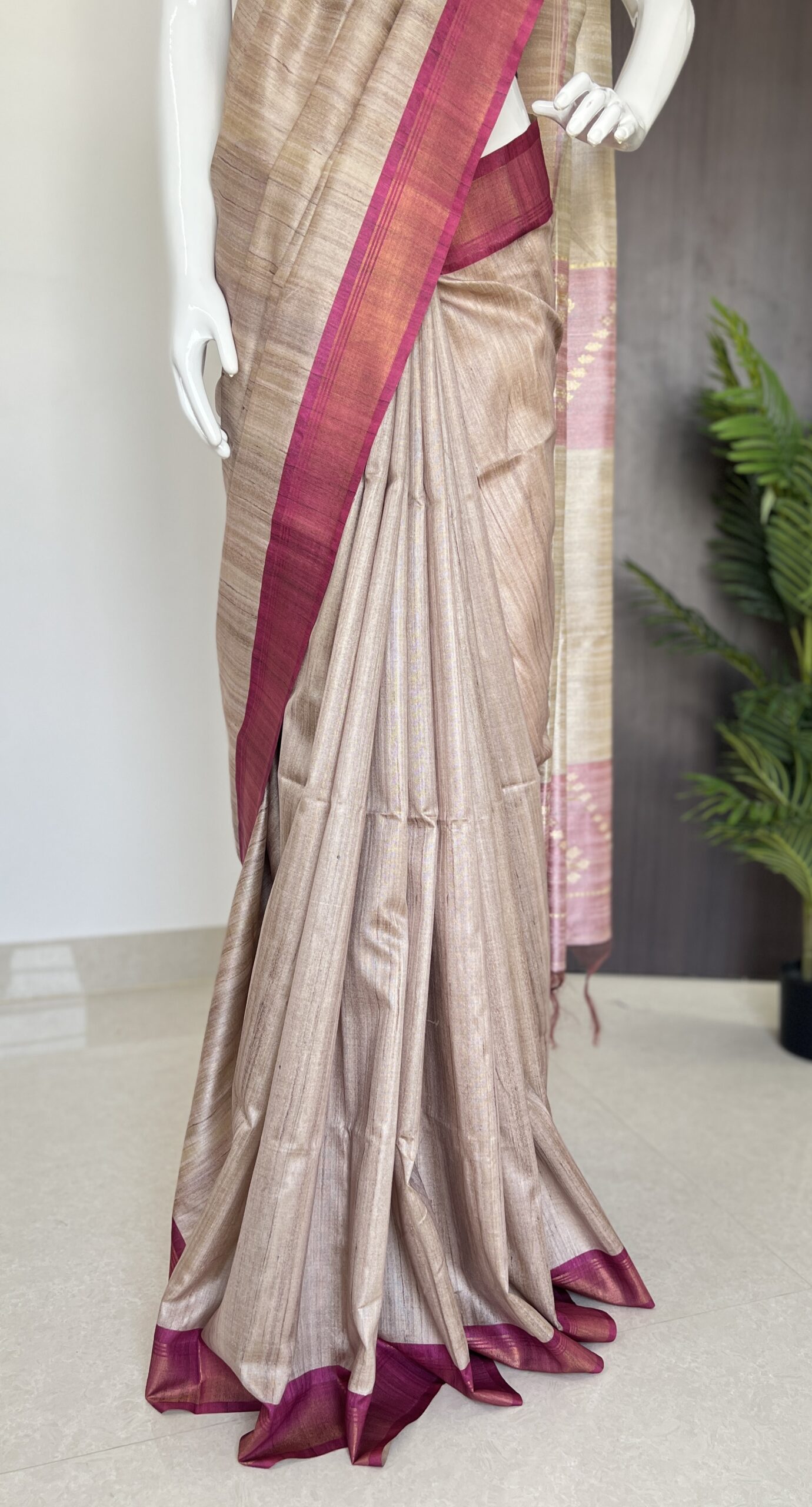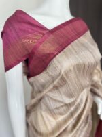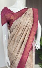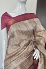 Embrace elegance with our exquisite semi tussar saree, featuring a stunning blend of earthy tones and delicate pink accents. Perfect for any occasion, this luxurious piece is designed for the modern woman who appreciates sophistication and style. Elevate your wardrobe with this high-end saree that embodies grace and beauty. 🌸✨
