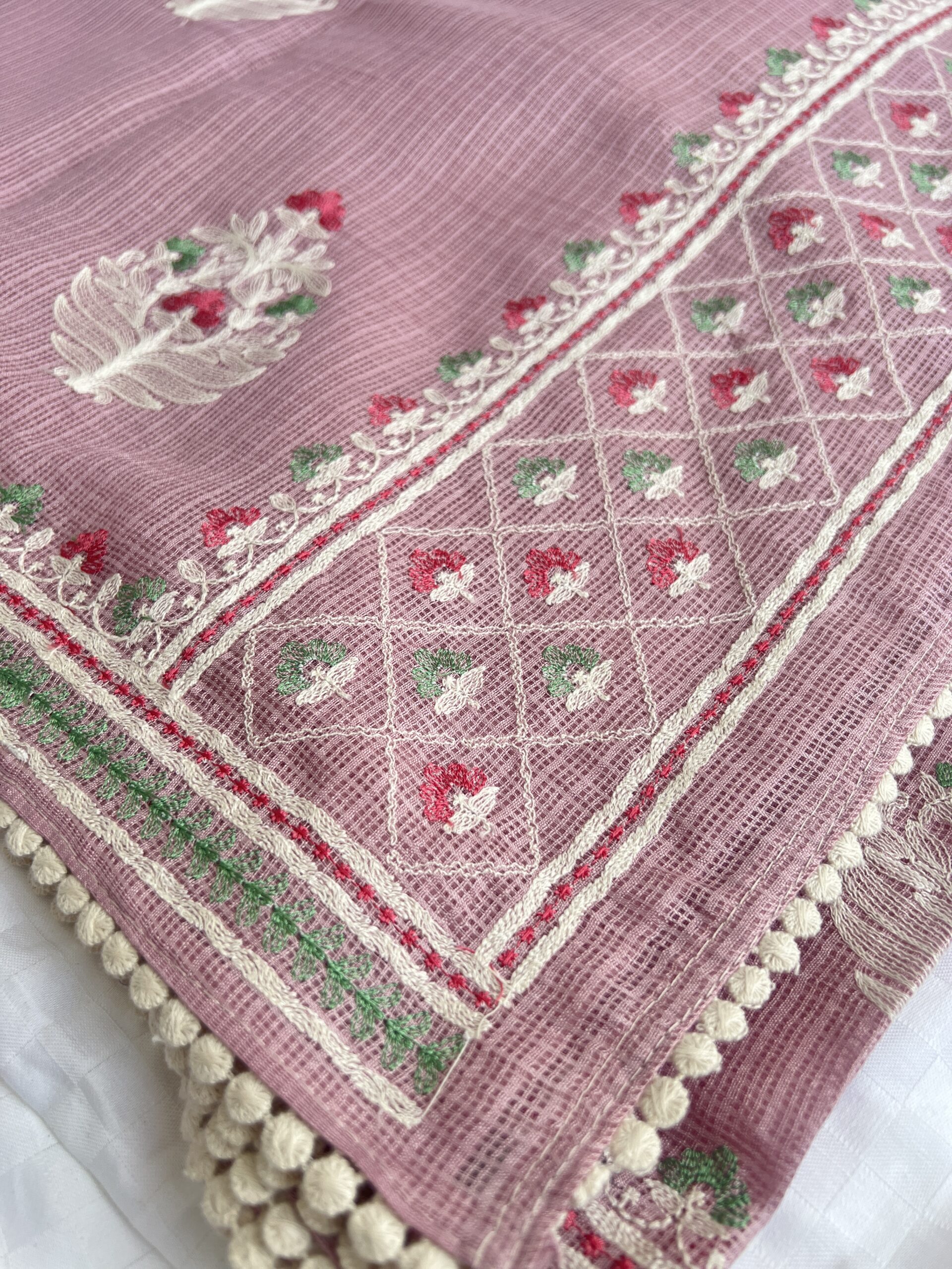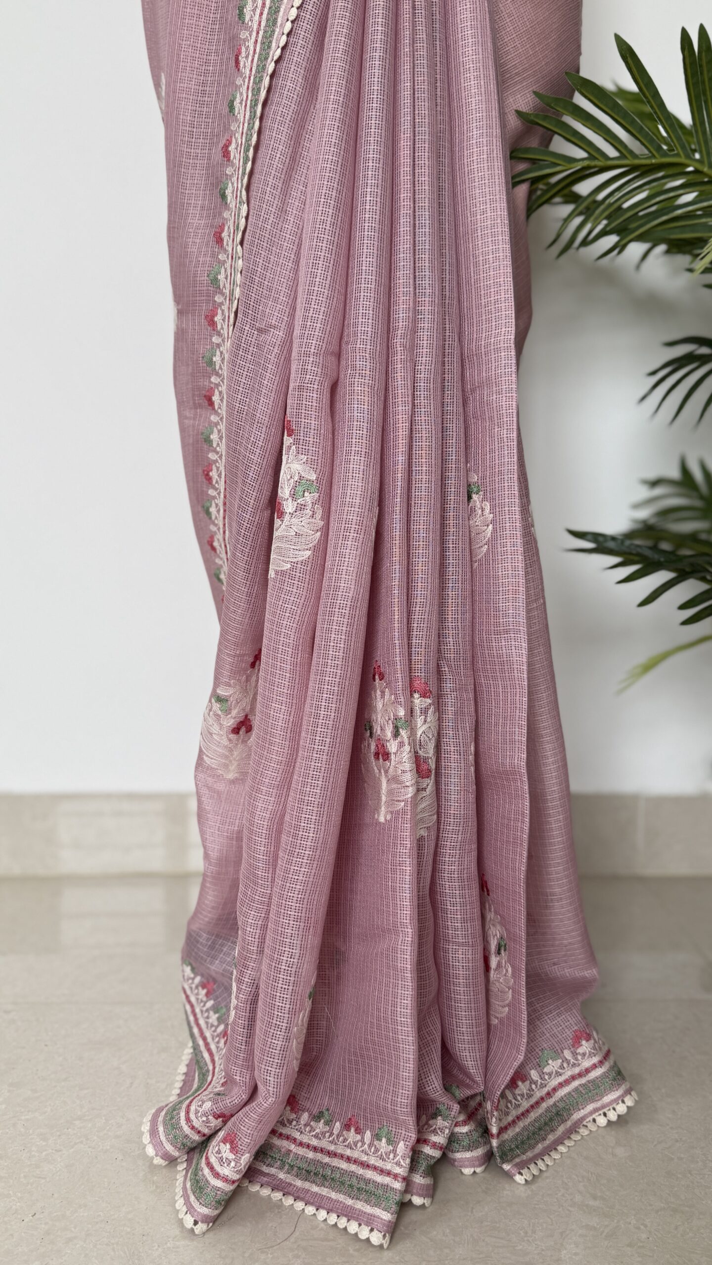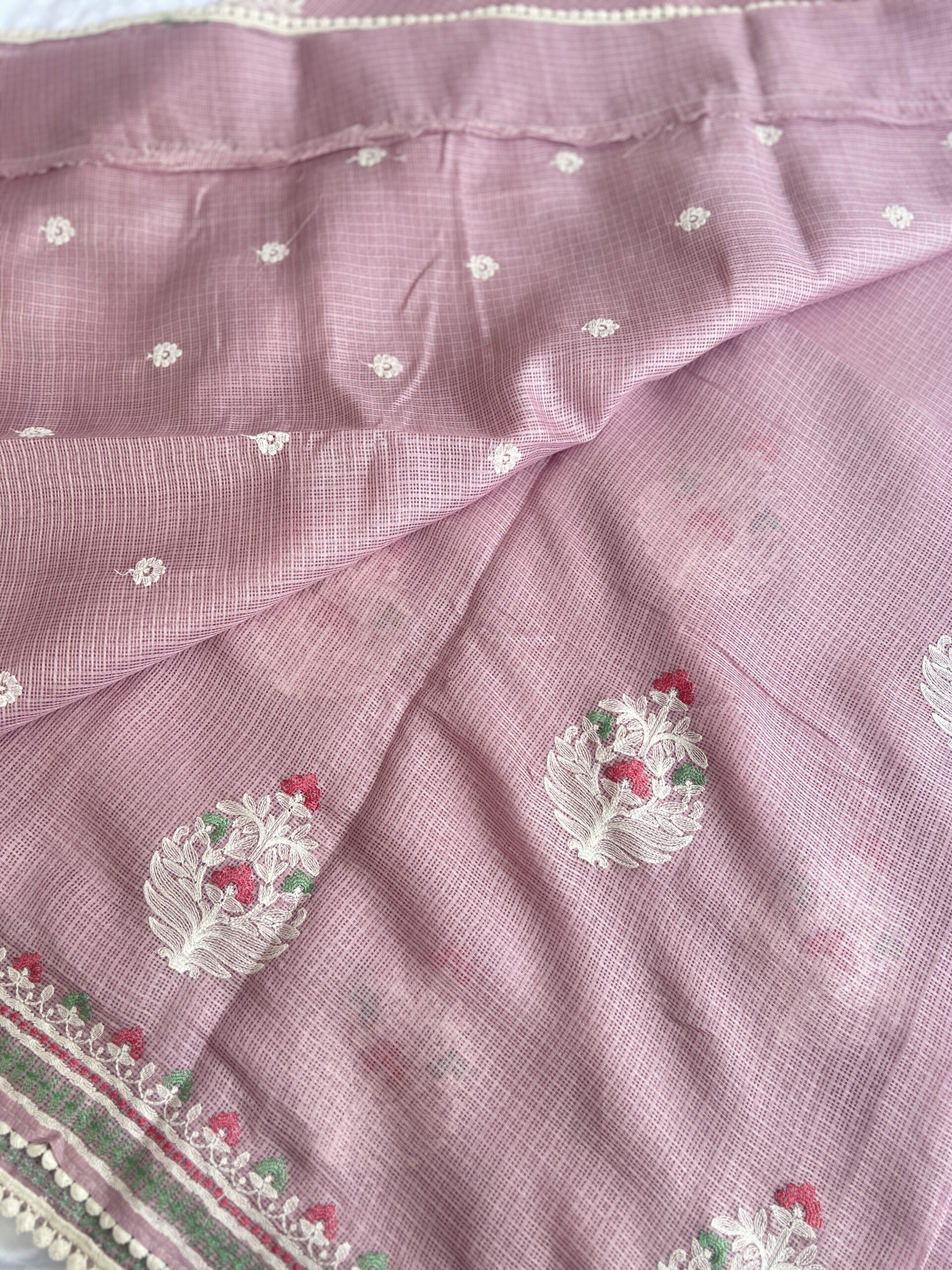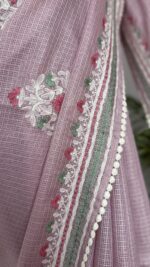 Charming Baby Pink Kota Saree with Exquisite Embroidery and Lace Border