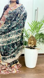 Discover the beauty of traditional craftsmanship with our Kalamkari Chennuri Silk Saree, a true masterpiece that exudes elegance and charm. Handcrafted with intricate Kalamkari art, this saree features timeless motifs inspired by nature, mythology, and folklore, meticulously painted onto the luxurious Chennuri silk fabric. The rich, lustrous texture of the silk enhances the vibrant colors and detailed designs, making it a perfect blend of heritage and opulence. Whether you’re attending a wedding, festival, or any special celebration, this saree promises to make you stand out with its regal appeal and cultural richness. Embrace the elegance of tradition with this stunning Kalamkari Chennuri Silk Saree, a beautiful addition to any wardrobe.